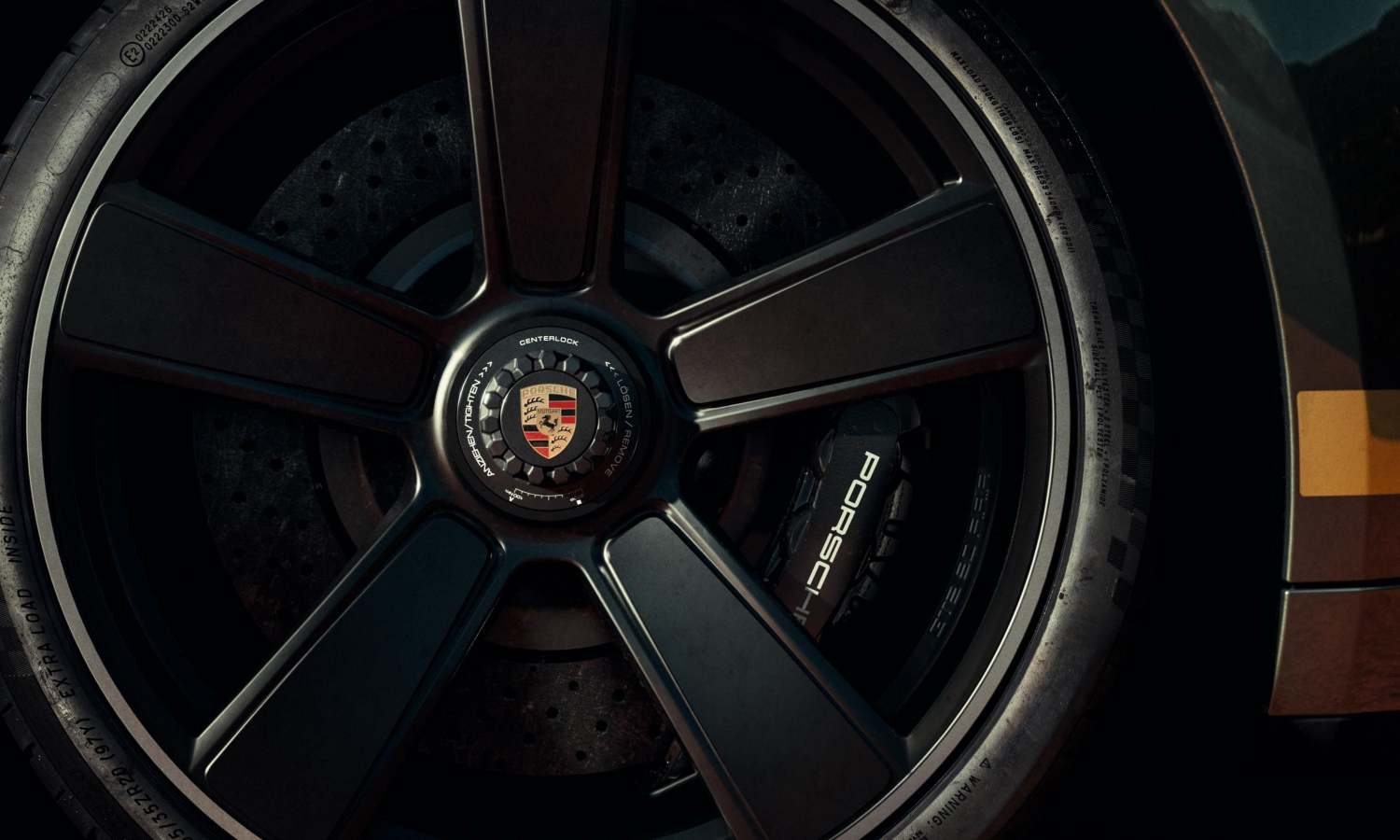 Más allá del color, el exterior incorpora varios guiños a la tradición de la marca. El coche monta llantas Sport Classic acabadas en negro satinado brillante, inspiradas en las míticas llantas Fuchs que marcaron la estética de muchas generaciones del 911. Estas llantas integran tuerca central y el histórico escudo de Porsche de 1963, un emblema que también aparece en otros puntos del vehículo, como el capó o el volante.