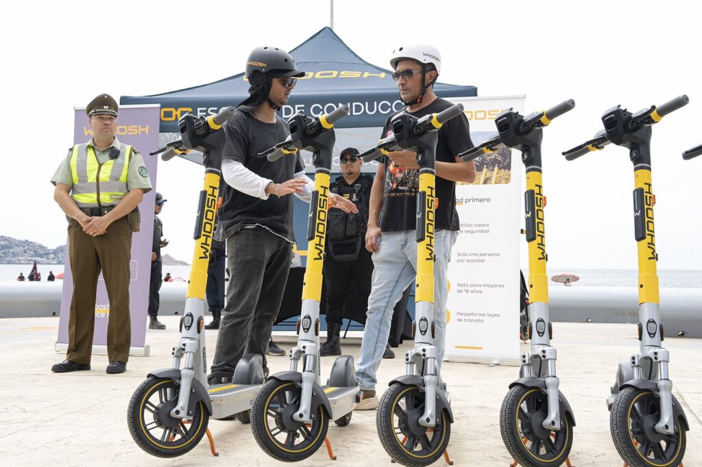 El Departamento de Seguridad Pública, junto con Carabineros y Whoosh aumentaron las fiscalizaciones durante las últimas semanas ante el mal uso que hacen del servicio algunas personas.Desde su llegada a la comuna hace un par de meses, los scooters eléctricos se han transformado en una alternativa importante de traslado y conectividad entre vecinos y visitantes por distintos sectores del territorio, personas que ven en el servicio ofrecido por la empresa Whoosh, una oportunidad de reducir tiempo y disfrutar viajes al aire libre como los que frecuentemente se dan en la avenida Costanera.Pero durante las últimas semanas, diversas denuncias de mal uso del medio de transporte, han obligado a la empresa, Carabineros y la Dirección de Seguridad Pública de la Municipalidad de Coquimbo, a redoblar los esfuerzos para evitar accidentes, aumentando fiscalizaciones en terreno, y monitoreando de diversas maneras el comportamiento de los usuarios, con el fin de mejorar y garantizar un buen uso del servicio.Durante la jornada, justamente estas tres entidades se reunieron en el kilómetro 465, sector skatepark de Coquimbo, para realizar una escuela de conductores, con el fin de educar a vecinos y visitantes sobre convivencia vial, seguridad, maniobrabilidad, normas básicas y funcionamiento de la aplicación.Matías Ochoa, City Manager de la empresa Whoosh en la zona, comentó que “estas escuelas buscan acercar el servicio a nuevos usuarios y turistas, les explicamos precios, contratos, convivencia vial, el uso de la app y les entregamos la experiencia en terreno para que aprendan a manejar rápidamente”. Con respecto a las sanciones que realiza la empresa por no respetar el contrato y los términos de condiciones que autorizan los usuarios al momento de ocupar el móvil, el representante de la marca indicó que “las personas están obligadas a usar casco, solamente pueden tomar el servicio los mayores de 18 años. Ante las situaciones anómalas que se presentaron como activar viajes a menores de edad, o andar más de dos personas en el scooter, nosotros podemos multar con precios que van desde los 40 mil pesos en adelante, hemos aumentado las fiscalizaciones con Carabineros y con el Municipio, para evitar accidentes y situaciones complejas”.Juan Diego García, director de Seguridad Pública de la Municipalidad de Coquimbo comentó que el periodo de marcha blanca está terminando, y que pronto comenzarán sanciones económicas para vecinos y visitantes que no respeten las leyes del tránsito y hagan mal uso de los scooters eléctricos.“Hicimos esta escuela de conducción junto a la empresa, para que los usuarios puedan tengan una conducción responsable y también conozcan más sobre la ley de tránsito y la convivencia vial. Es importante respetar la velocidad, utilizar cascos, y tener en claro que solo los mayores de 18 años pueden utilizar este transporte ofrecido por la empresa. Ante la mala utilización del servicio y el no cumplimiento de la ley, el usuario arriesga multas que van de 0.5 UTM en adelante, dependiendo de la infracción que se cometa”, argumentó el director de la cartera.Para Daniela Arias, vecina de la comuna de Coquimbo y alumna de la escuela de conducción esta instancia significó una “experiencia sumamente entretenida. Este servicio ayuda a mejorar la movilidad y los traslados entre La Serena y Coquimbo. La gente debe respetar este medio de transporte, no hay que ser irresponsables, la idea es que la gente se lo tome en serio, siga las leyes. Aprendí rápido a manejar, no es difícil”.Finalmente, María Arrendo, visitante de la comuna de Santiago destacó el servicio, y sostuvo que “es importante aprender a usar estos scooters, nunca había tenido la oportunidad de usarlos y es fácil manejarlos. Hay que respetar el espacio de los otros, ser prudentes al momento de manejar para así evitar accidentes o problemas, de igual manera creo que el servicio igual debería arrendar cascos, tal cual como lo hacen con los scooters, considerando que es difícil que las personas las lleven en la mano, pero estas acciones gratuitas para la comunidad se agradecen”.Desde el Municipio como la empresa, hacen el llamado a las personas a utilizar de buena manera este medio de transporte, el cual se ha transformado en una alternativa de conectividad real para la comunidad.